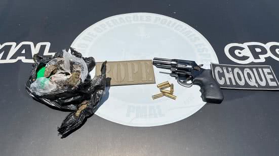 Neste sábado (23), a Polícia Militar de Alagoas (PM-AL) apreendeu uma arma de fogo e aproximadamente 500 gramas de drogas em uma área de mata próxima ao Condomínio Residencial Aldebaran, na parte alta de Maceió.