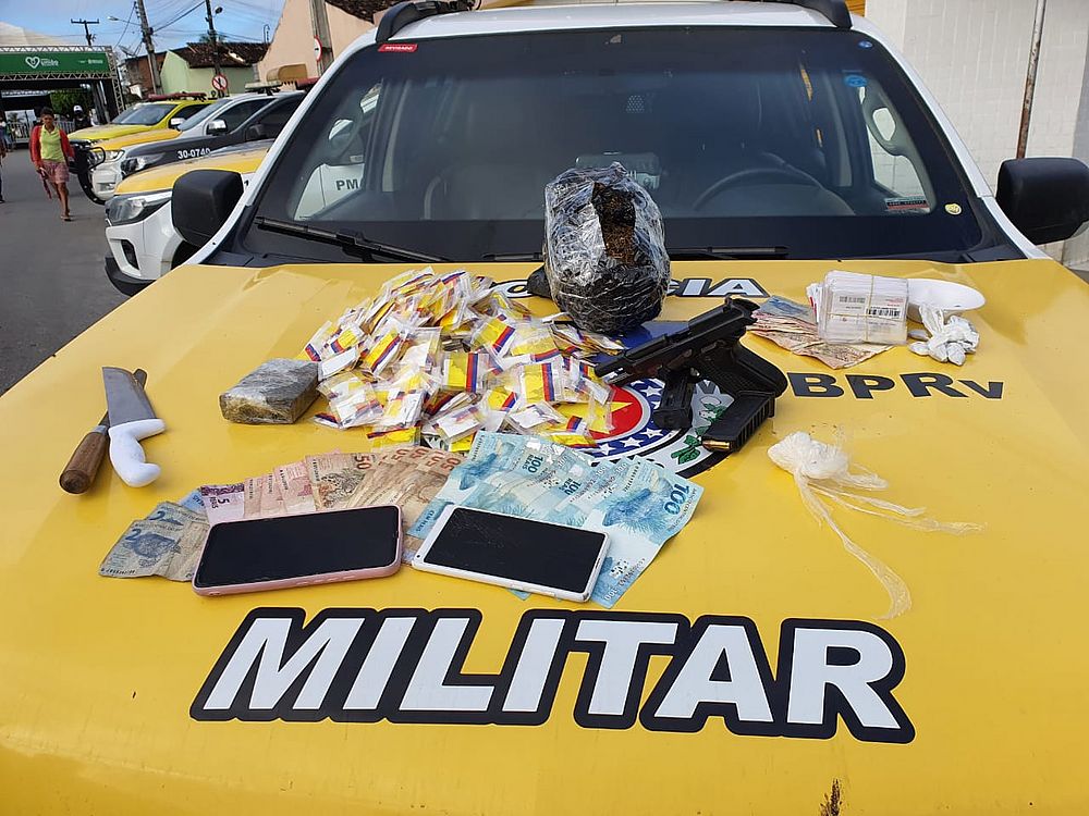 "As guarnições cumpriram os mandados de busca e apreensão expedidos pela 17ª Vara Criminal da Capital, onde foi encontrado com três suspeitos uma boa quantidade de drogas, arma de fogo e diversas munições", infomorou o Batalhão de Policiamento Rodoviário (BPRv).