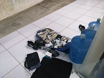 Ao chegar na Rua Agripino Silveira, a polícia montou o cerco e deu voz de prisão aos suspeitos que já estavam em posse de celular, notebook, rádio e até equipamentos de oxímetro, aparelho usado para medir a saturação de oxigênio no sangue.