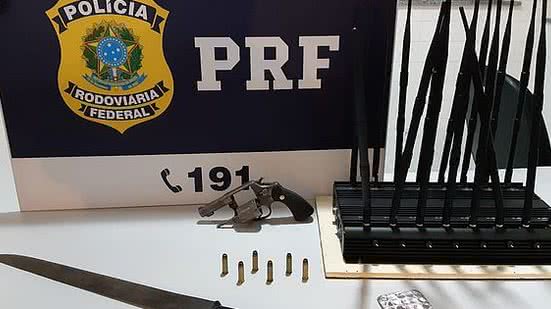 Segundo informações da assessoria de comunicação da PRF, os suspeitos que estavam em um veículo Volvo, de cor branca e de placa de Santo André/SP, foram abordados e com eles foram encontrados um revólver Taurus, calibre 38, carregado com 6 munições de mesmo calibre. A arma estava escondida no interior de carro. Além disso, a polícia apreendeu um bloqueador de sinal de celular.