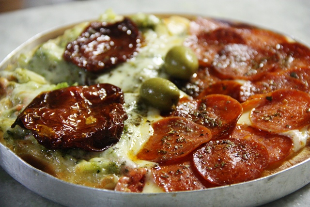 Das pizzas da Del Popollo gosto da brócolis com tomate seco e a outra metade de pepperoni. O legal é que na Del Popollo os fãs de massa têm direito a escolher quatro sabores. Aplausos, porque normalmente são dois. Telefone: 3241-0309