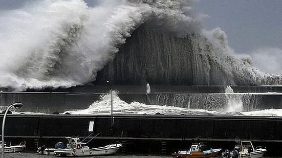 Devido às altas ondas causadas pelo tufão, um navio petroleiro se chocou com a ponte que fez a conexão do local com o resto do país, deixando passageiros e funcionários isolados na madrugada.