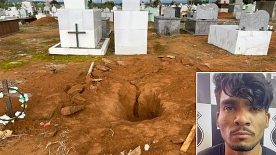 O túmulo de Lázaro Barbosa, que passou 20 dias fugindo da polícia depois de ter matado uma família no Distrito Federal em junho de 2021, foi violado em Cocalzinho de Goiás, no noroeste do estado, nesta quarta-feira (15). De acordo com o delegado Rafhael Barboza, a suspeita é que tenham levado o crânio durante a violação. No entanto, ainda será necessária perícia no local.