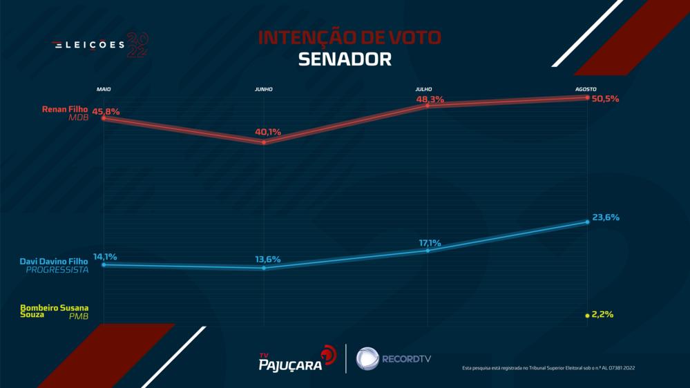 SENADO: DAVI CRESCE MAS RENAN FILHO MANTÉM LIDERANÇA