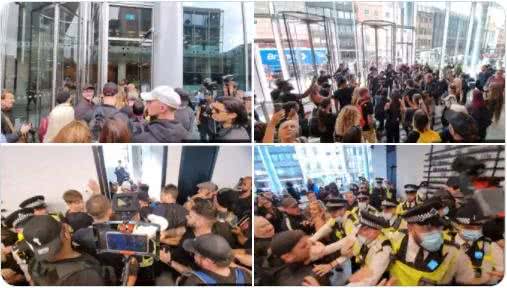 #JUST IN - Anti-vaccine passport protesters storm ITV News office in London.#Vaccine #Passport #Protest #London pic.twitter.com/S9y9vB68sV
