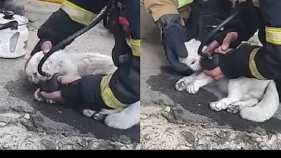 No momento do resgate, o animal não mostrava sinais de vida e então foi levado para fora do edifício, onde recebeu os primeiros socorros.