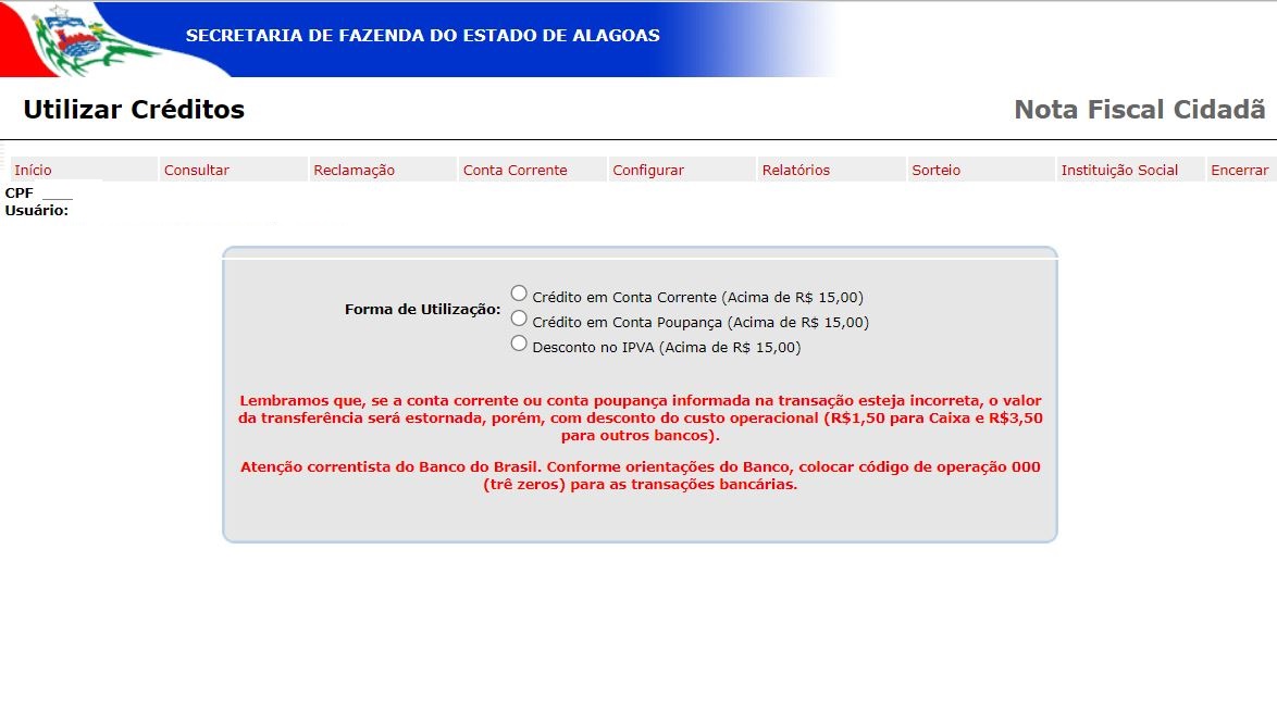 Para realizar este procedimento, é só acessar a sua conta da NFC em nfcidada.sefaz.al.gov.br e selecionar “Conta Corrente”, depois acessar “Utilizar Créditos” e, enfim, clicar na opção “Desconto no IPVA”.