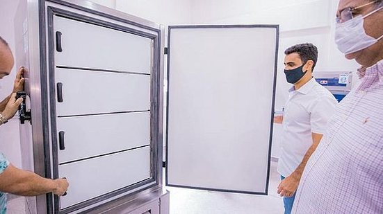 São dois ultracongeladores verticais com capacidade de 800 litros e temperatura de -86 graus; um ultracongelador vertical que pode armazenar 580 litros, também em temperatura de -86 graus; e mais três congeladores horizontais, com capacidade de 400 litros e temperatura de -30 graus.