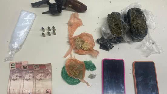 Segundo informações da PM, os dois envolvidos com o comércio ilegal de entorpecentes tentaram fugir, mas foram alcançados com um revólver de calibre 32, seis munições, 46 g de crack, 398 g de maconha, R$ 30 e dois celulares.