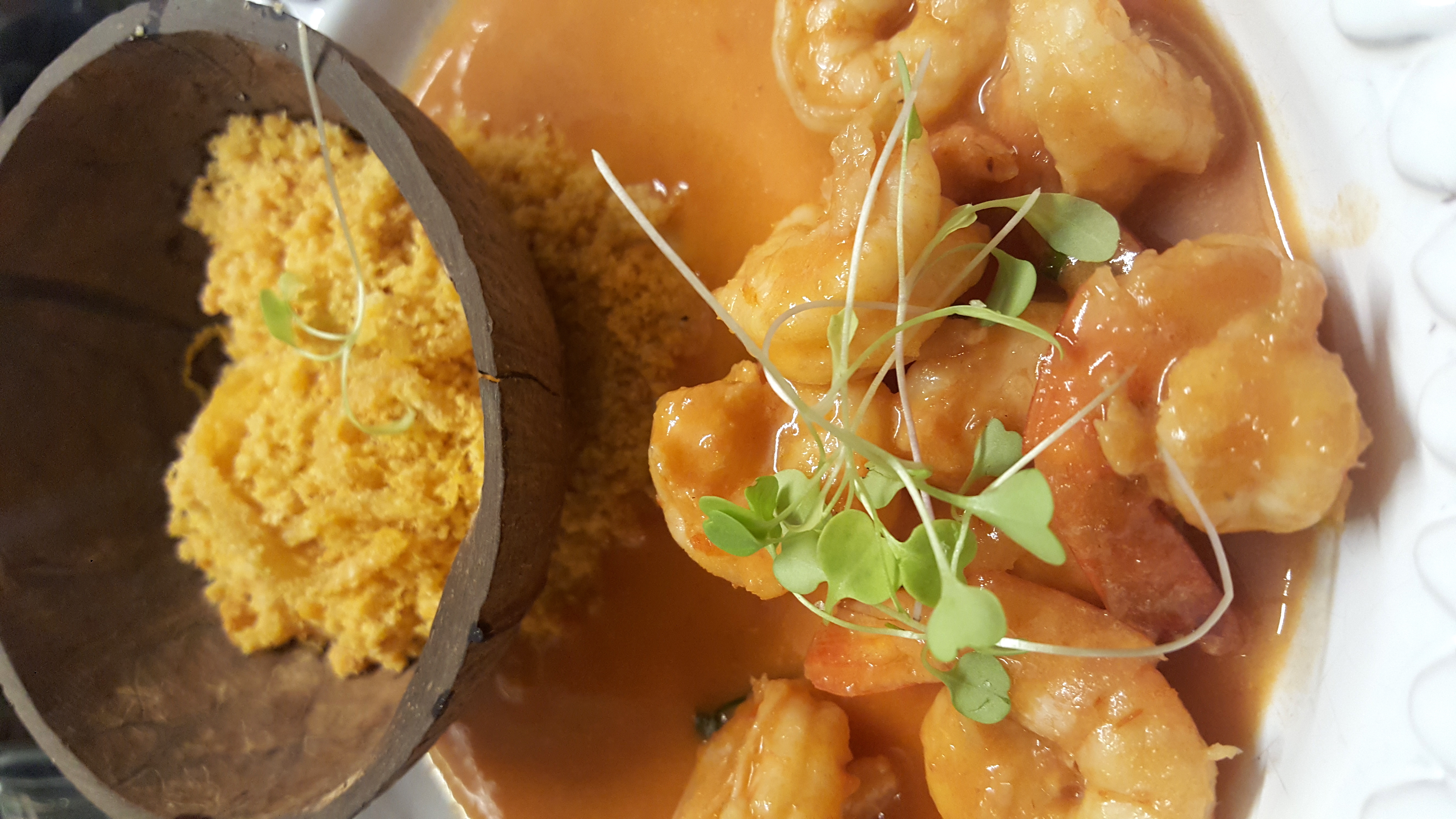 Mariana Bernardes – Chef consultora do Grand Cru e hotéis Ponta Verde, teve a missão de reproduzir a receita Camarão do Bar das Ostras, com a saladinha e farofa de mandioca. A iguaria é Patrimônio Imaterial de Alagoas, com seus camarões vila franca, seu molho aveludo e a apresentação bem caprichada, com a farofa dentro da quenga de coco.