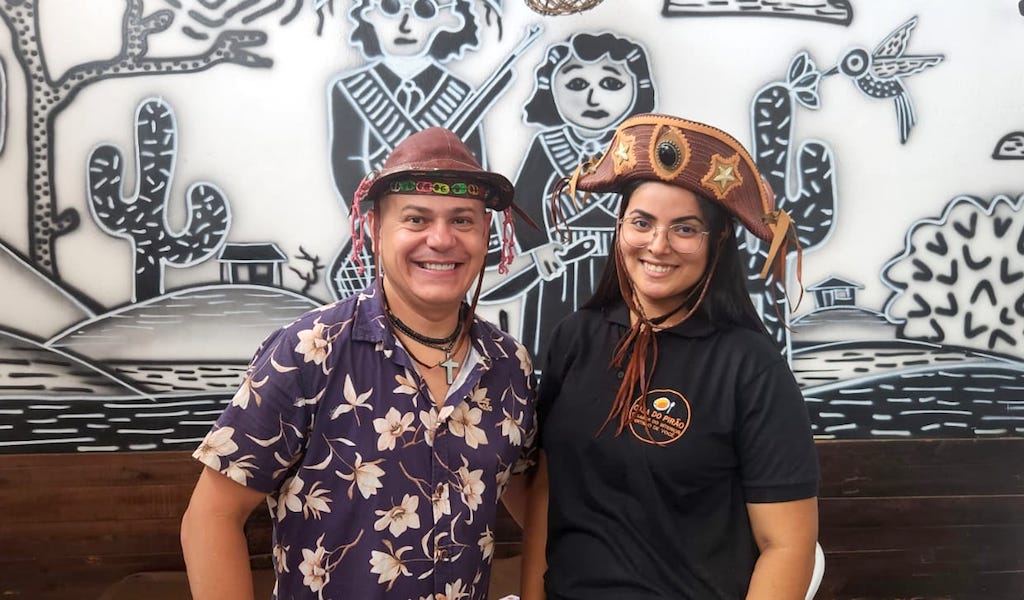 Amanda Cris e o amigo Laildo Vasconcelos, sócios da Casa do Pirão