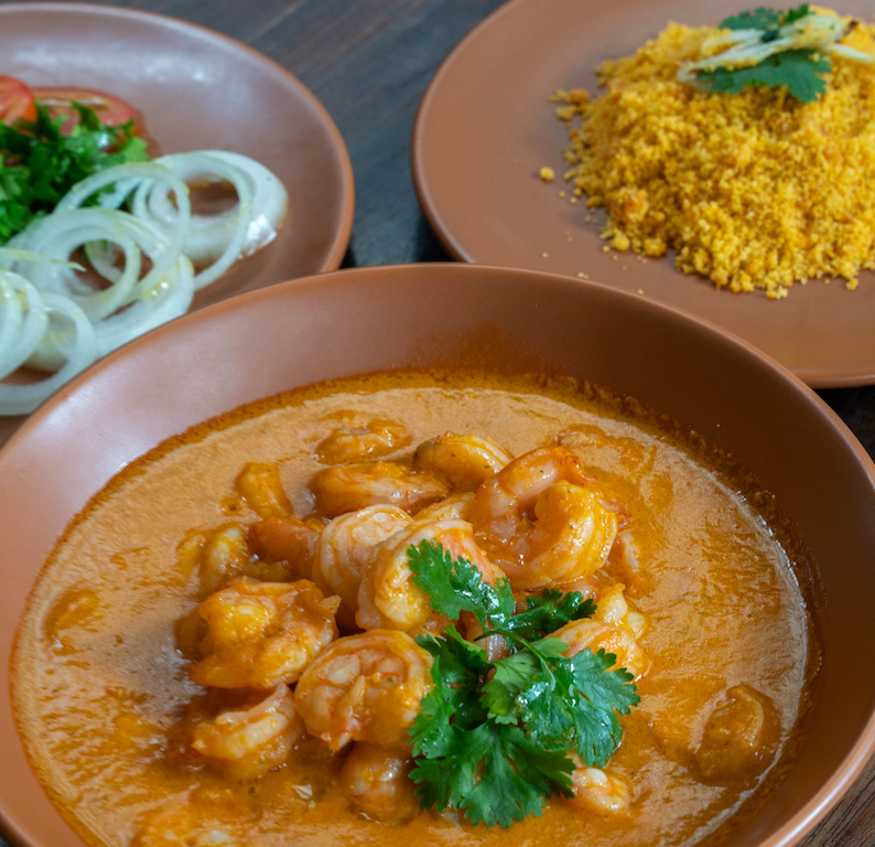 Tem o xêro das nossas cozinhas, carregado de tradição. No Maranhão, o arroz de cuxá; no Ceará, o baião de dois; no Rio Grande do Norte, a ginga com tapioca; no Piauí, a paçoca de carne-de-sol; na Paraíba, o rubacão; em Pernambuco, o bolo de rolo; em Alagoas, o sururu no leite de coco; e, em Sergipe, o caranguejo uçá.