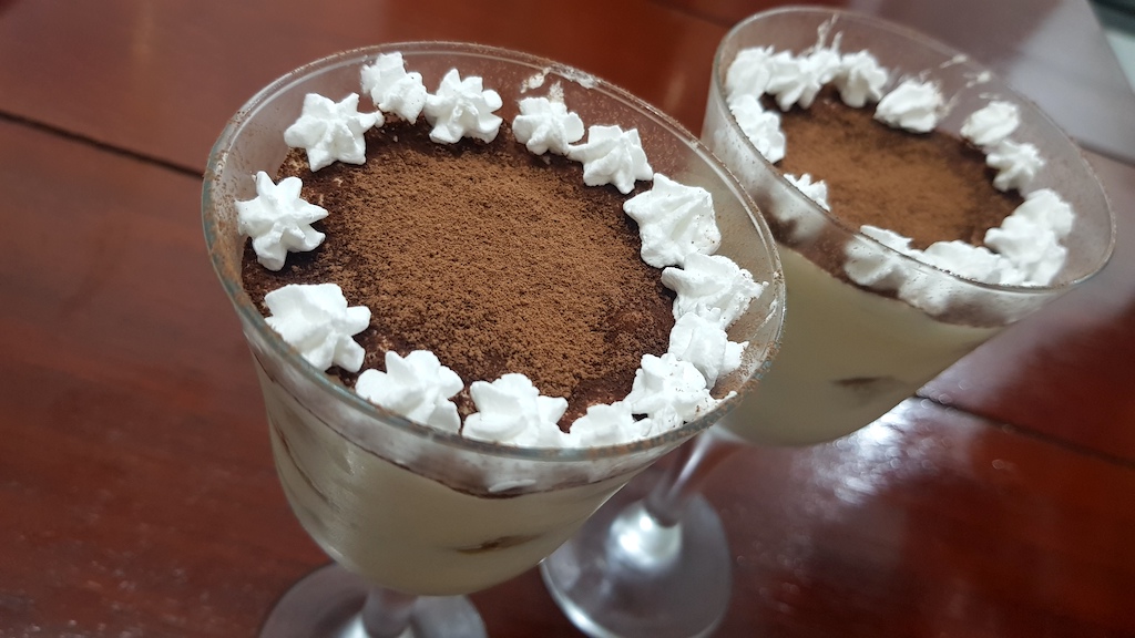 Com mais de 30 anos de cozinha italiana, Cris, preparou o tiramisú, uma sobremesa clássica da Itália. Uma delícia. Na receita, queijo tipo mascarpone, ovos, açúcar, biscoito champanhe, café e cacau em pó, tudo em perfeita harmonia. Doce suave e o café na medida certa. É aquela sobremesa que merece bis.