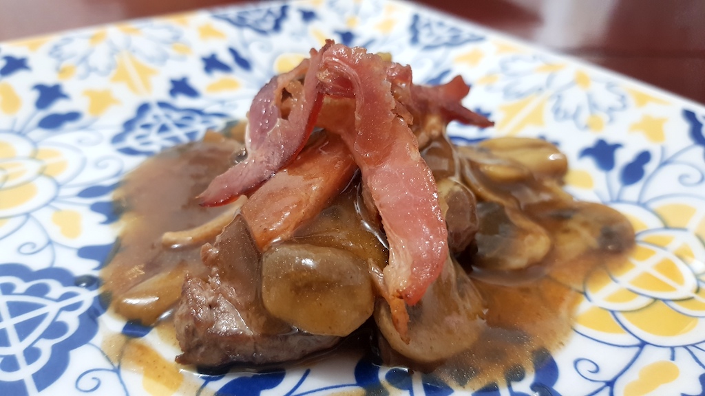 Filé mignon com bacon,champignon e vinho chianti