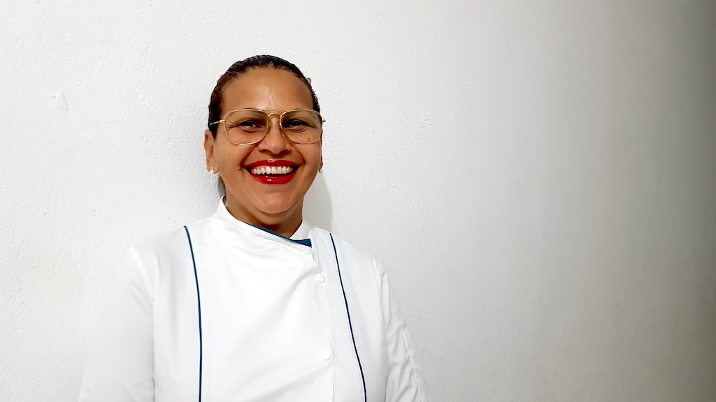 A simpática Maria Cristina dos Santos Cantu, conhecida como Chef Cris