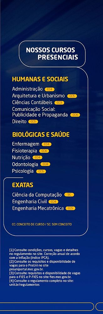 Quer garantir essa oportunidade? Então você já pode consultar os editais completos do processo seletivo e fazer as inscrições até às 18h do dia 8 de fevereiro. As inscrições são gratuitas e podem ser feitas no site www.unit.br/bolsas.