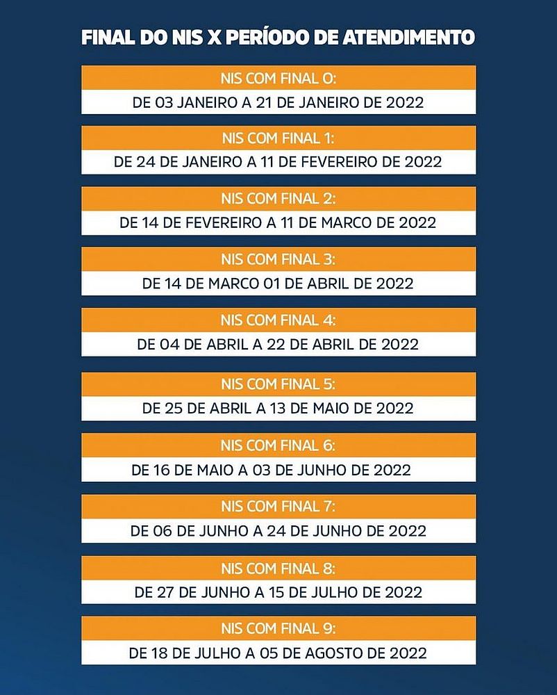 Os usuários que devem atualizar as informações são aqueles que fizeram o NIS ou atualizaram os dados até o dia 1º de janeiro de 2020. Estes devem seguir o calendário de acordo com o final do seu NIS.