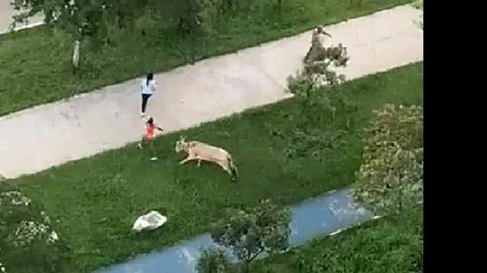 O bicho chegou a ser atropelado por um ônibus durante as tentativas de contenção.