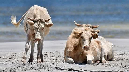 As vacas pertencem a um rebanho criado na cidade de Cedar, que fica no continente, mas foram varridas em setembro por um "mini tsunami" gerado por Dorian.