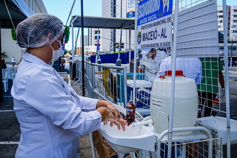 Durante a campanha de vacinação contra o vírus da influenza, os profissionais de saúde foram orientados pelo Ministério da Saúde a não utilizarem luvas. Isso porque, diante da situação de emergência em saúde em razão da Covid-19 (coronavírus), com as luvas seria necessário trocá-las a cada paciente atendido, por isso a orientação é o uso de álcool em gel e a frequente lavagem das mãos com sabão.
