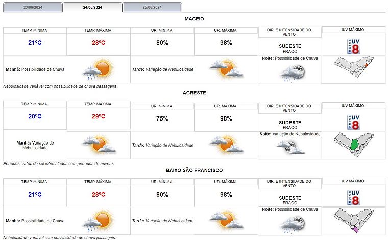 Veja a previsão completa para todo o estado de Alagoas na segunda-feira: