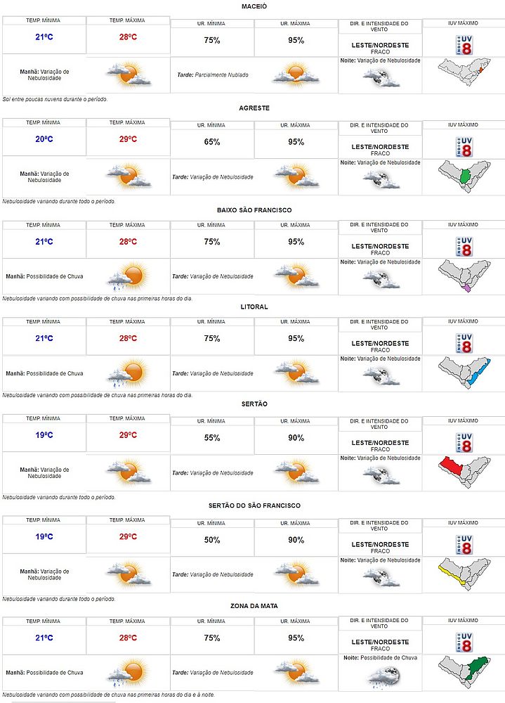 O meteorologista Henrique Mendonça, da Secretaria de Estado do Meio Ambiente e de Recursos Hídricos (Semarh), confirmou para a reportagem do TNH1 que a previsão é de predomínio do sol, em todas as regiões, no próximo sábado, e de tempo seco, mas com chuvas isoladas, principalmente no Litoral, no domingo (16). Apesar da boa notícia, o tempo pode ficar instável em partes do dia, mas sem comprometer desastres em estradas e alteração dos níveis de rios e lagunas.