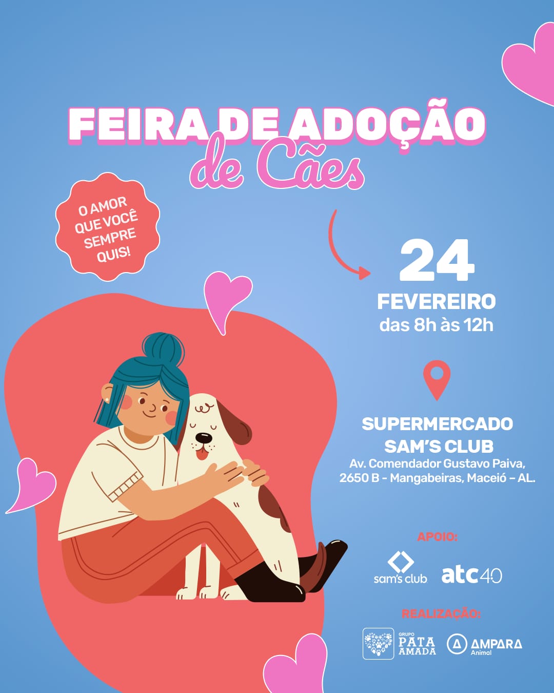 Olá, gente! O blog trás uma dica especial para quem deseja adotar um pet! Neste sábado (24) o Grupo Pata Amada vai realizar uma feira de adoção no supermercado Sam’s Club, que fica na Av. Comendador Gustavo Paiva, 2650, no bairro da Mangabeiras, das 8h às 12h.