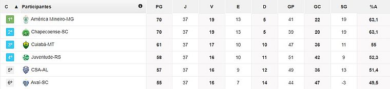 Já os catarinenses, que têm 55 pontos e estão na sexta posição, precisam vencer o Coelho fora de casa e torcer por uma derrota do Juventude e uma derrota ou empate do CSA. Assim, o Avaí passaria os adversários no número de vitórias, que é o primeiro critério de desempate na igualdade de pontuação.