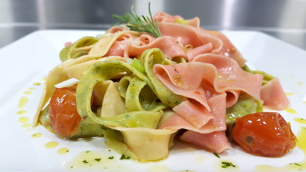 A receita de massa caseira colorida com espinafre e beterraba ao molho cítrico, foi uma aula das chefs professoras Amanda e Polianny . E claro, no final, comi e aprovei.