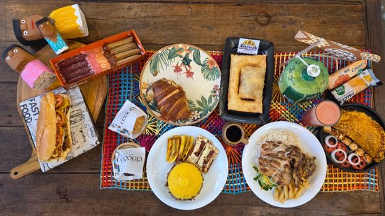As frutas também marcam presença: o Frutos de Goiás traz o Combo Fruta da Terra, com picolé e paleta de fruta, dedicado ao artesão Arlindo Palitos de Fósforo. Já o Emporium Regional aposta no queridinho das feiras, pastel de carne de sol com água de coco, homenageando Maceió.