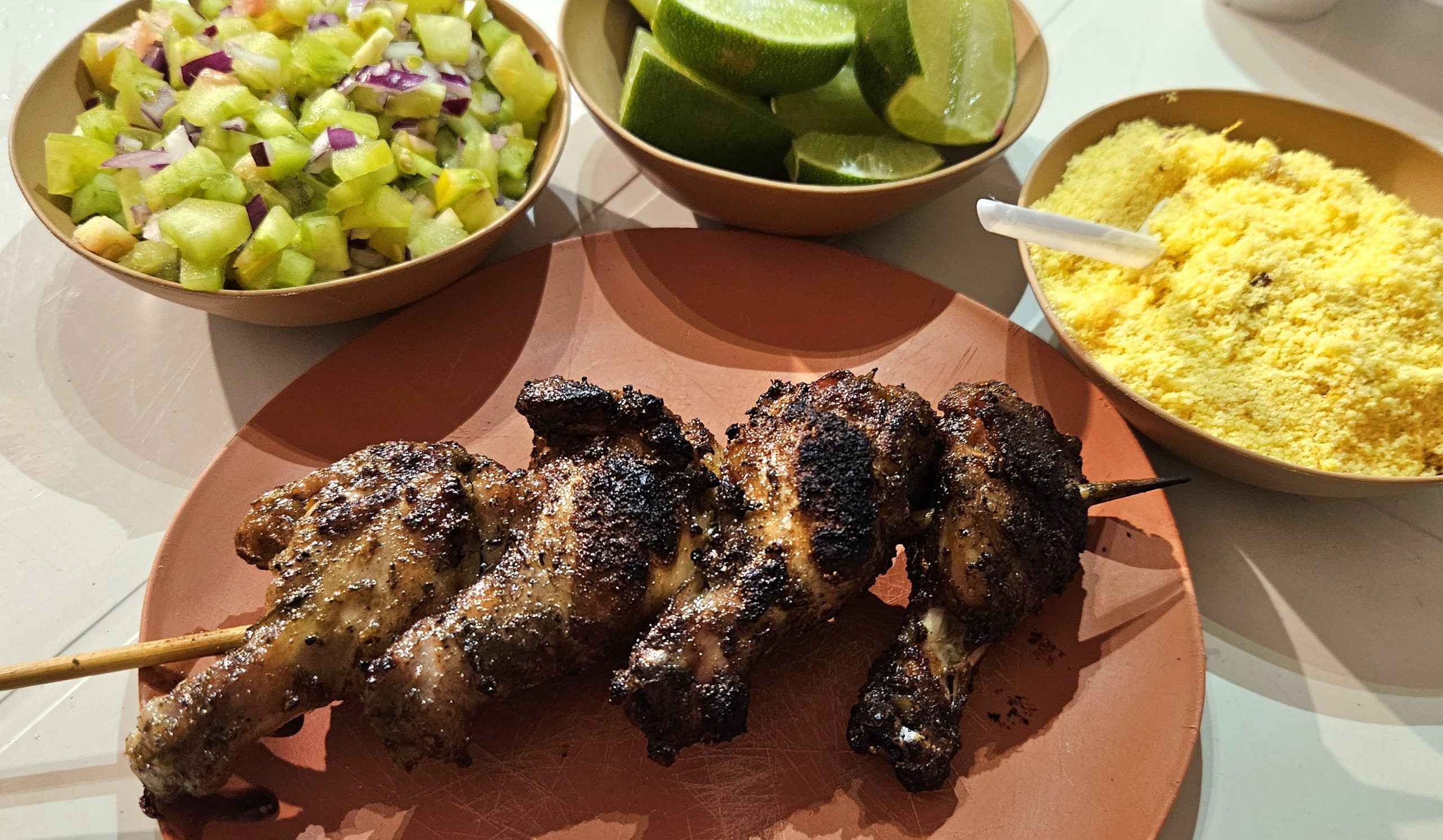 Nem sempre as melhores comidas estão em lugares turísticos, como é o caso do Espetinho do Sertão (@espetinhosertao_), localizado na Praça de Eventos, na Barra de São Miguel, que oferece uma variedade de churrasquinhos – no total são oito. Amei as coxinhas de asa, bem temperadas, e para acompanhamento, o freguês escolhe duas opções, entre vinagrete, farofa, macaxeira e feijão verde. Quem comanda o trailer é o casal Nathaly Clemente e Claudemir Barbosa (conhecido como Sertão), que contam com o auxílio luxuoso da filha, Nathily. Para o Prazeres da Mesa, de 2 a 4 de fevereiro, o casal tem novidades: o espetinho de peixe, que já provei e é bom demais.
