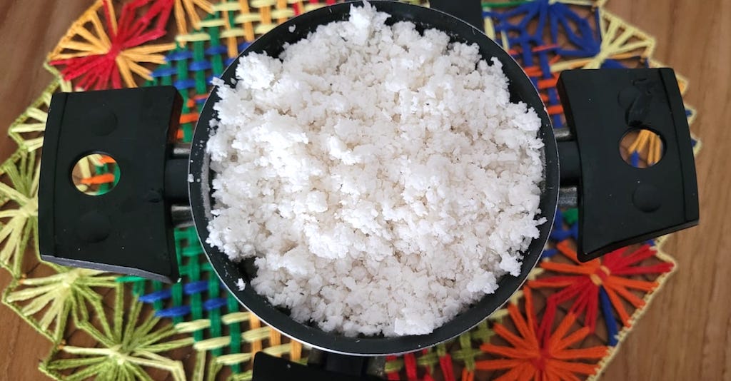 Publiquei no Instagram o cuscuz de arroz do meu café da manhã, e alguns seguidores perguntaram onde comprar? Vou fazer melhor e mostrar como preparar a tradição em casa, porque é super simples. Uso flocão do Coringa, coco ralado e leite de coco. Mas vou indicar três lugares em Maceió, e um em Pão de Açúcar, que vendem o cuscuz mais artesanal do mundo.