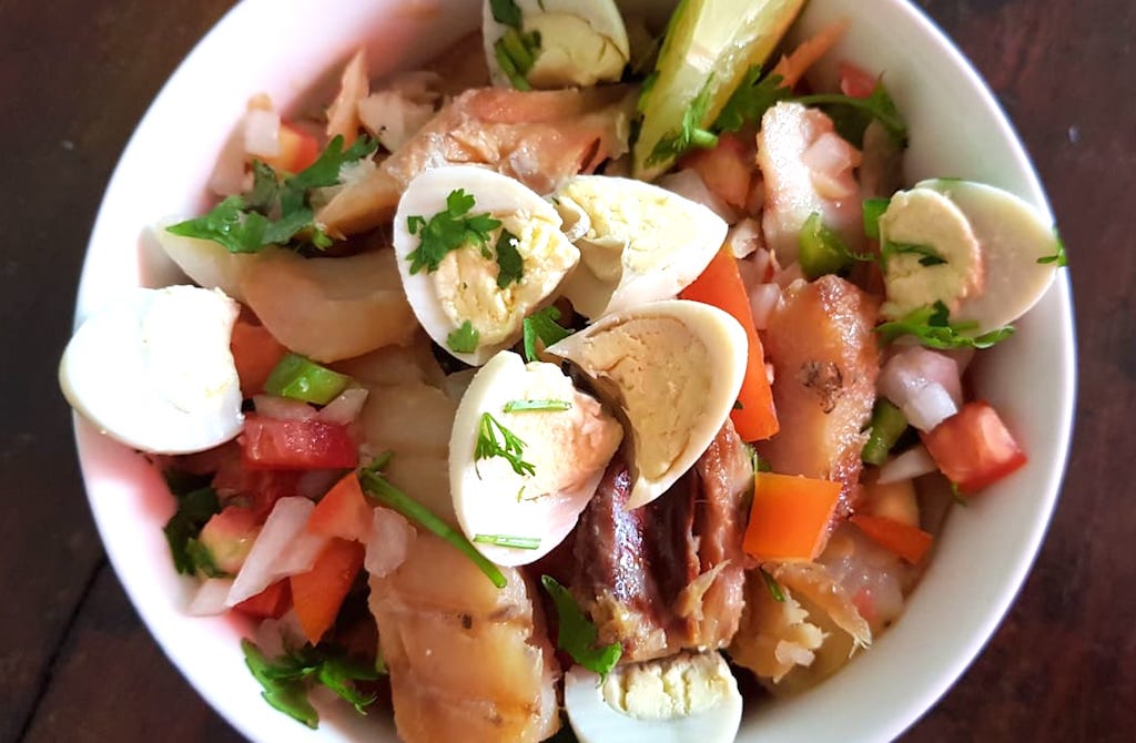 Salada de bacalhau, simples e saborosa