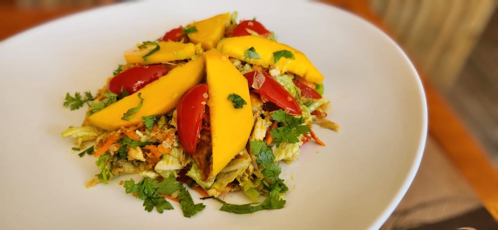 A cozinha do Manga Verde prima pelo frescor, e quanto mais natural, melhor, inclusive tem horta orgânica que abastece as receitas livres de glúten e de açúcar, algumas têm lactose, mas também oferecem opções veganas (sem nada de origem animal). Todas as comidinhas que provei (desde 2015) no Manga Verde são saborosas.