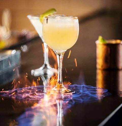 Fogo – Ninguém se queima, mas a chama é o espetáculo do Fábrica Cinnamon, um drink autoral do Chico. A bebida de gin tônica é bem refrescante e aromática e a grata surpresa é a borda de canela e açúcar, onde até o cravo é casamento perfeito.