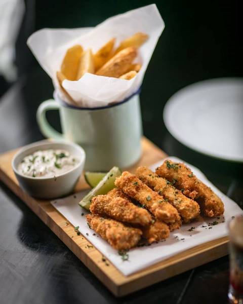 Fish ’N’ Chips – Um clássico de todo pub, o peixinho empanado vem acompanhado de batatas rústicas. Além do chopp gelado e das cervejas, vale e muito viajar pelos sabores dos drinks.