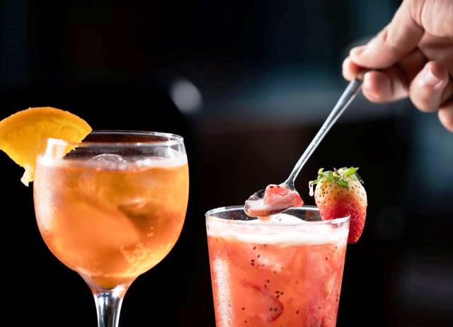 Variedade de drink, como o Fabrica Sunset é mais doce, com vodca, morango, kiwi, xarope e suco de cramberry. Foto: @ruinagaefotografia