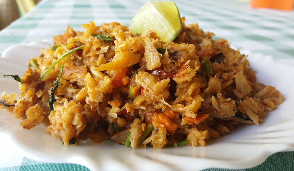 O famoso Bar Cadoz começou numa casa feita de taipa e palha de coqueiro. Lá, vendia-se bebidas e o primeiro tira-gosto foi siri na manteiga de garrafa que o próprio Renaldo (In memoriam) inventou, depois que comeu peixe com os mesmos ingredientes. Ele pediu à sua esposa, Maria de Lourdes, fazer idêntico com o siri. Deu certo e o prato virou celebridade no Cadoz. O siri é temperado com coentro, tomate, cebola, e finalizado na manteiga de garrafa, esse toque do Sertão que, nas comidas de Alagoas, dá a essência do sabor na receita. E a carne do molusco fica crocante, comi sem moderação, aliás, todo mundo que aparece por lá faz a mesma coisa que eu fiz.
