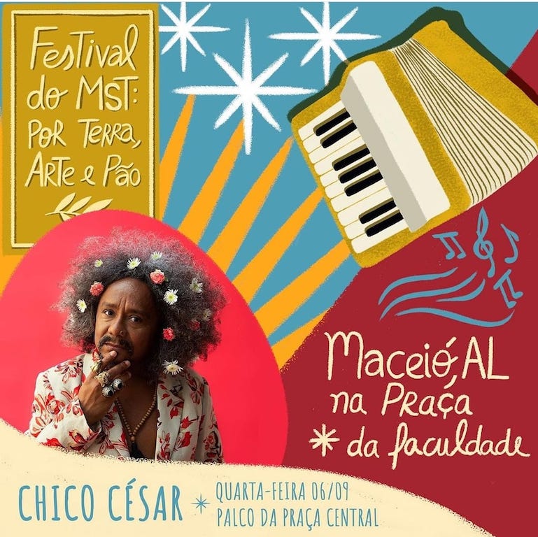 Do campo para a cidade, a Feira da Reforma Agrária tem beiju de goma de tapioca, ou de macaxeira ralada, tapioca, bolo de massa puba, ovos de capoeira, uma tenda com restaurante da agricultura familiar, legumes, verduras, feijões, galinha de capoeira, artesanato do povoado da Ilha do Ferro (Pão de Açúcar), shows gratuitos (e nesta quarta tem Chico César). Todas essas delícias estarão à disposição de 6 a 9 de setembro, na 22ª edição da Feira da Reforma Agrária na Praça da Faculdade. Imperdível!!