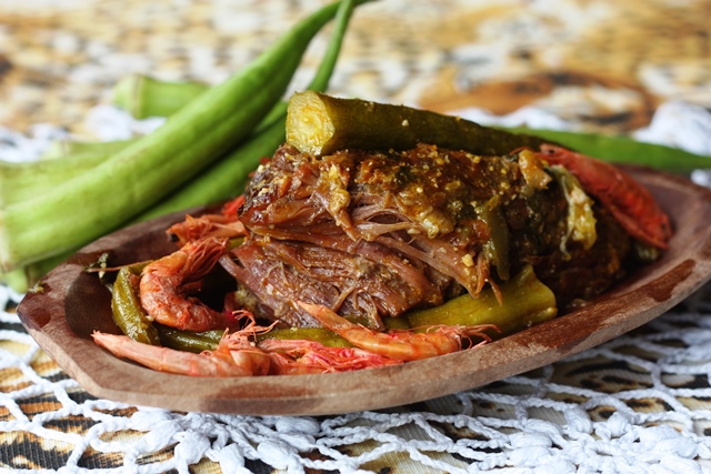 Amalá é peito de boi cozida com quiabo, azeite dendê, camarão seco e gengibre
