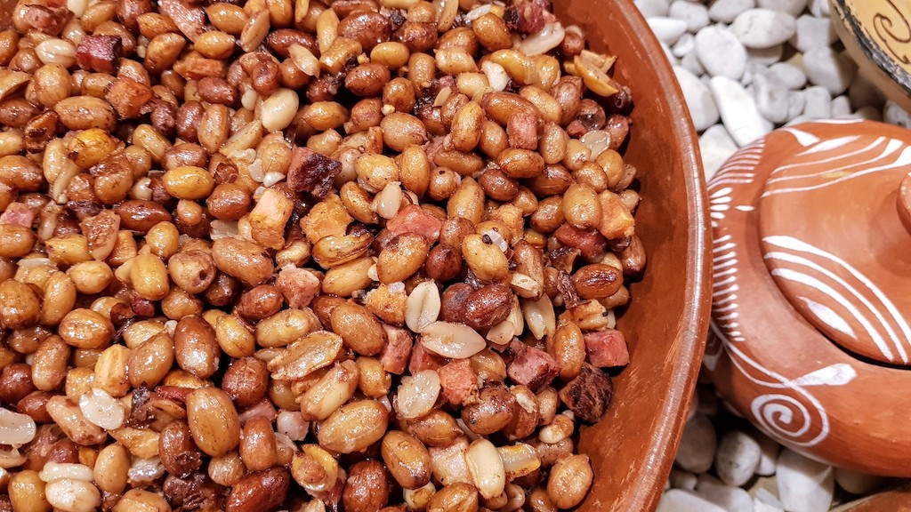 Malungos: amendoim cozido com linguiça, bacon, charque e carne de sol