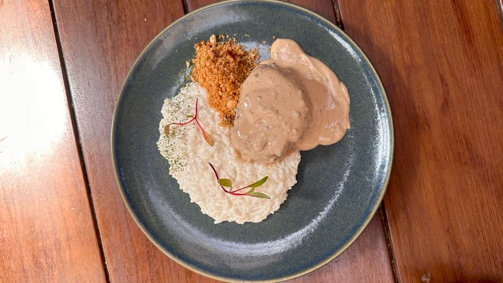Grano Padaria: Filé mignon ao molho poivre, arroz piamontese e farofa panko Grano