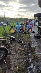 As vítimas fatais são uma mulher de 50 anos e um jovem de 18 anos, eles ocupavam veículos diferentes. Já os feridos socorridos são uma jovem de 18 anos, que apresentava fratura exposta no pé e escoriações, e um rapaz de 17 anos, com suspeita de fratura no fêmur.