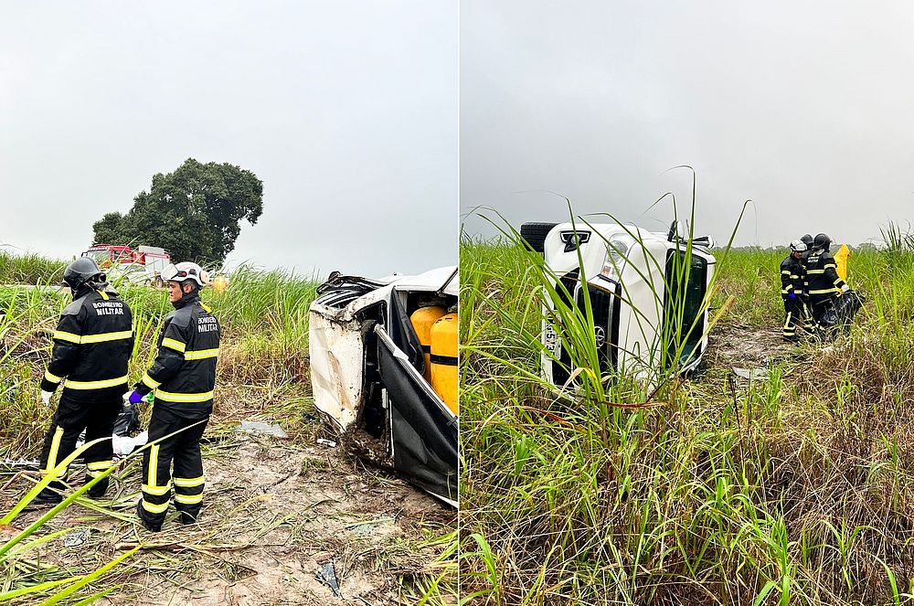 Os bombeiros realizaram os procedimentos de segurança no veículo capotado, para que novos incidentes não acontecessem. Ao todo, 13 militares foram deslocados em três viaturas, conforme consta no relatório de ocorrências em tempo real da corporação.