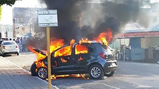 Um veículo modelo Fox pegou fogo, na tarde desta terça-feira, 19, nas proximidades da Praça Padre Júlio de Albuquerque, no Centro de São Miguel dos Campos.