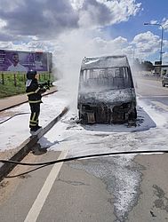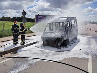 O Corpo de Bombeiros, que enviou três militares e uma viatura para atender à ocorrência, esteve no local e debelou as chamas com sucesso. Ainda não foi informado o que pode ter provocado o início do incêndio na van.