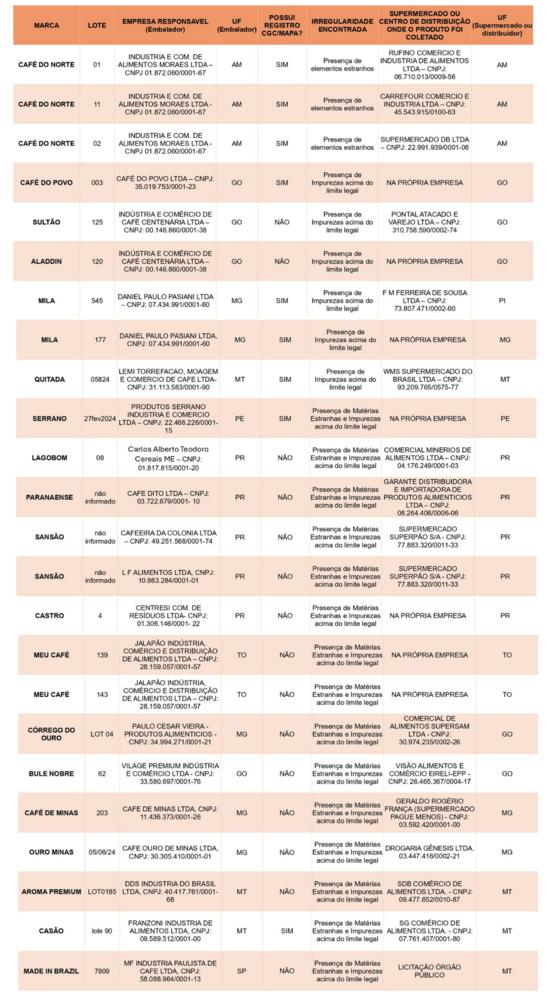 O alerta faz parte da Operação Valoriza, que contou com ações de fiscalização em todo o país entre os dias 18 e 28 de março de 2024, tendo sido coletadas 168 amostras de café no período.