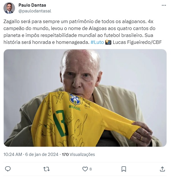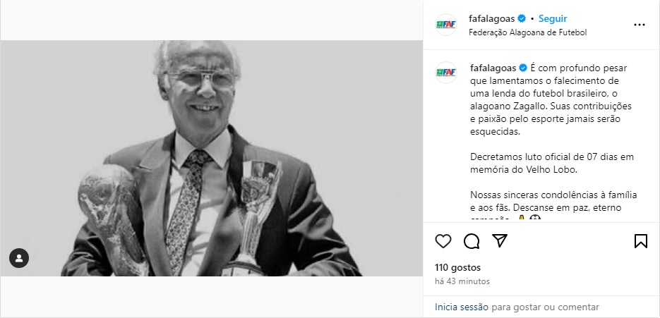 Como forma de homenagem, times, entidades e autoridades de Alagoas publicaram notas de pesar em seus perfis oficiais nas redes, lamentando o falecimento do ícone da Seleção Brasileira, conhecido como o “velho lobo”.