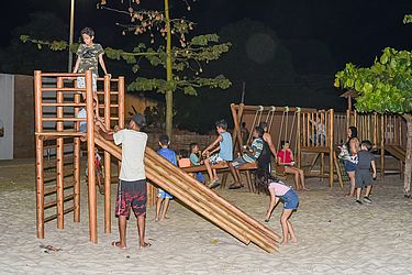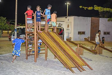 No Jacintinho, a praça conta com novos atrativos, a exemplo do campo com grama sintética, a área para ginástica construída em concreto e a instalação de brinquedos sustentáveis produzidos com madeiras de ipê provenientes de reflorestamento, com parte dos equipamentos doada pela empresa Serraria Falcão.