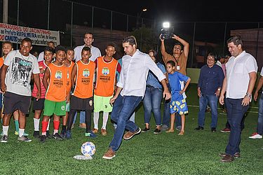 “Às vezes venho com os meninos para ‘rachar’. O campo ficou muito bom com essa grama sintética. Antes, os campos que a gente ia eram pagos e para jogar era difícil”, disse Gustavo.